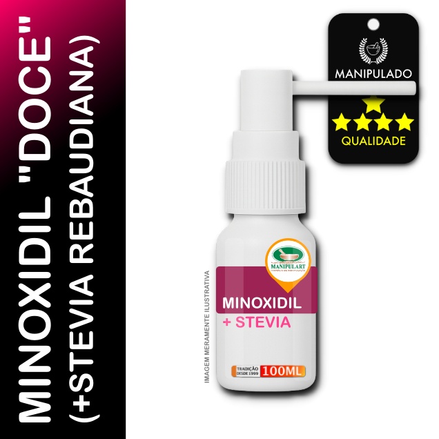 O Minoxidil "Doce" é uma formula para uso externo que une a eficácia consagrada do Minoxidil com o potencial natural do Extrato de Estévia (Stevia Rebaudiana), em uma formulação inspirada em estudos recentes que observaram resultados promissores na associação entre esses dois compostos.